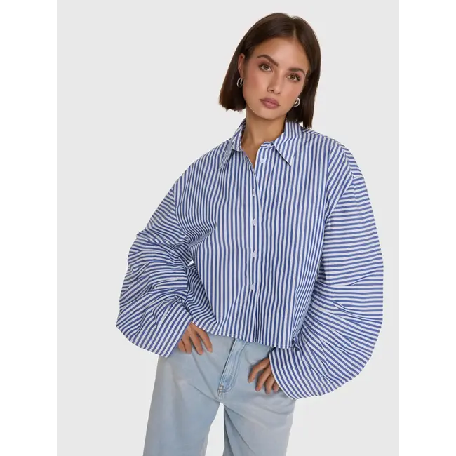 Shop de ALIX THE LABEL Fancy Striped Blouse in Royal Blue. Opvallende strepen en relaxte pasvorm. Perfect voor een elegante, moderne look van kantoor tot avondje uit.