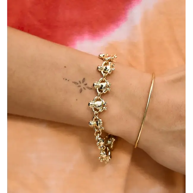 De Monkey Loop Bracelet zijn speelse, gedetailleerde aapjes die samen een opvallende armband vol karakter vormen. Combineer met andere statement pieces of draag solo voor een gouden glimlach om je pols.