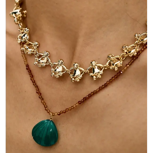 De Monkey Loop Choker zijn speelse, gedetailleerde aapjes die samen een opvallende ketting vol karakter vormen. Combineer met andere statement pieces of draag solo voor een gouden glimlach om je nek.