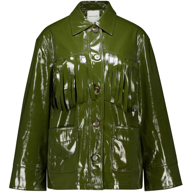Glossy groene statement blazer met speelse fringes voor een bold, edgy look die dag en nacht de show steelt! Gemaakt van glanzend materiaal met voering voor comfort. Perfect voor parties of casual chic outfits. Shop nu online of in de winkel.