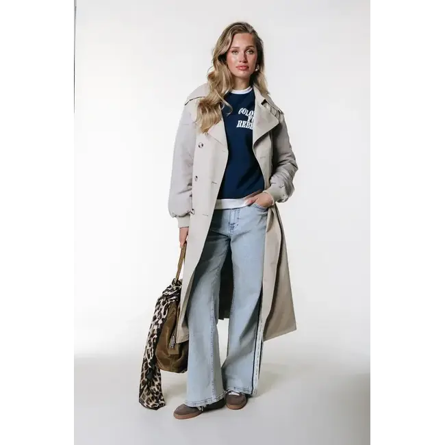 Colourful Rebel COLOURFUL REBEL - KAIA CONTRAST SLEEVE TRENCHCOAT - LIGHT SAND