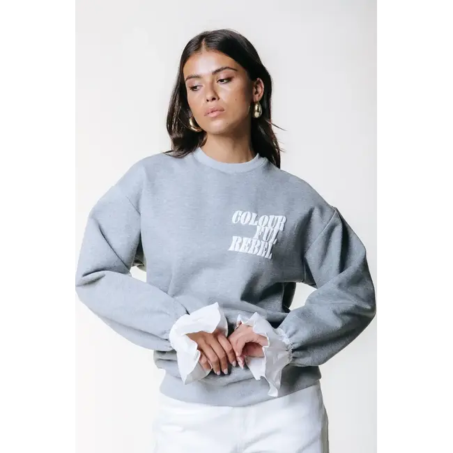 Colourful Rebel COLOURFUL REBEL - POPLIN CUFF DROPPED SHOULDER SWEAT - LIGHT GREY MELANGE