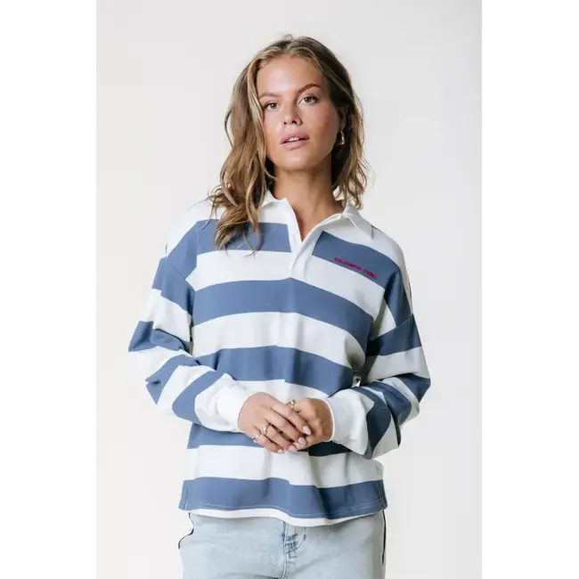 Colourful Rebel COLOURFUL REBEL - SKYLAR STRIPED 33 POLO LONGSLEEVE - MEDIUM BLUE