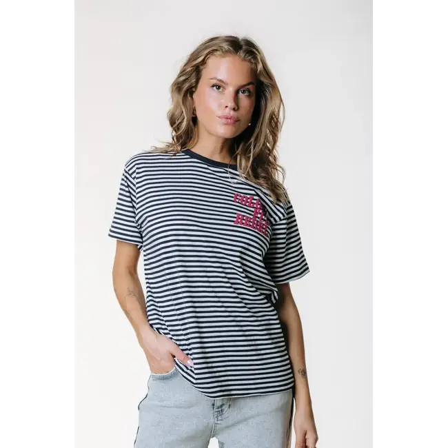 Colourful Rebel COLOURFUL REBEL - STRIPED LOGO LOOSEFIT TEE - DEEP BLUE