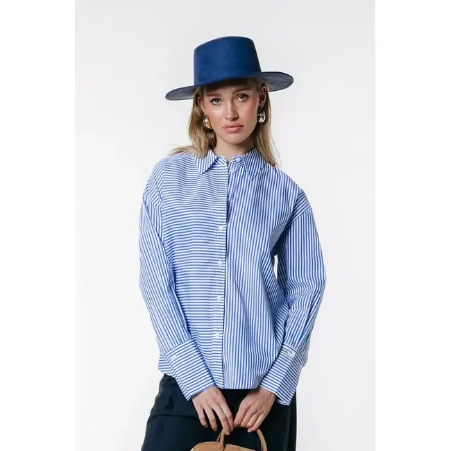 Colourful Rebel COLOURFUL REBEL - TALIA STRIPED BLOUSE - WHITE/BLUE