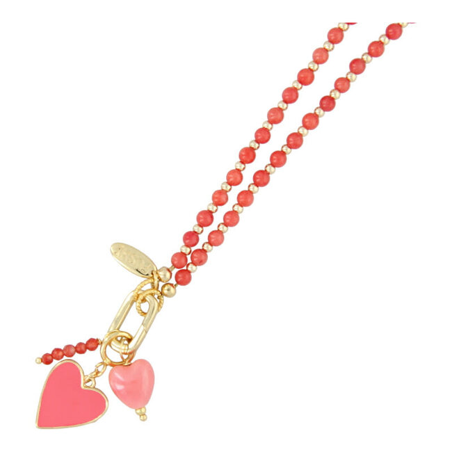 Fushi Fushi ketting 4mm steenkralen oranje met clip en bedels