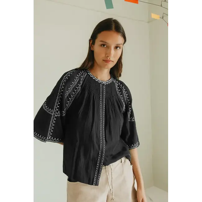 Indi&Cold INDI & COLD - BELL SLEEVE BLOUSE - BLACK