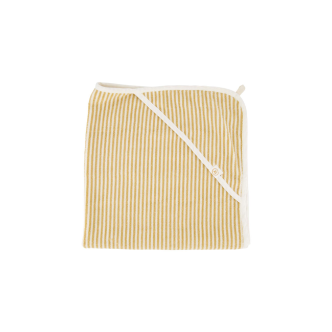 Superzacht 100 % katoenen badtextiel met trendy zandkleur streepprint en capuchon, perfect voor de kleine leukerd na baden of zwemmen. Comfortabel one size, absorberend en stijlvol voor uren droog-knuffelplezier! Nu online en in de winkel verkrijgbaar.