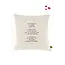 Met dit Zusss kussen vertel je een mooie boodschap! Op dit kussen staat namelijk een mooi gedicht over: jij dichtbij mij. Ook erg leuk als kadootje! Het kussen is zandkleurig en is 45x45cm groot. Dit item is gemaakt van 50% katoen en 50% linnen. Het Zusss logo vind je terug op het PU labeltje aan de zijkant van het kussen.