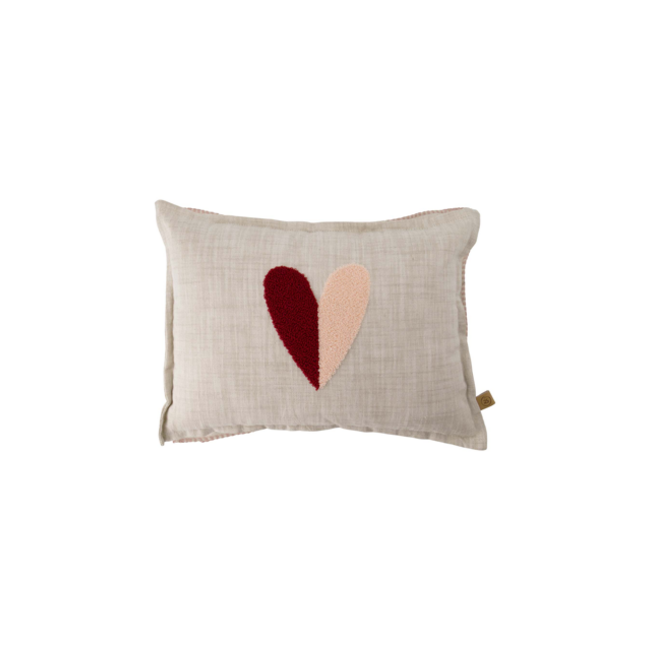 Romantisch off-white kussen met rood geborduurd hartje, perfect voor een cozy accent in de woonkamer of kinderkamer. Superzachte vulling, casual stijl en tijdloos design. Ideaal voor knusse momenten en als cadeau! Nu online en in de winkel verkrijgbaar.