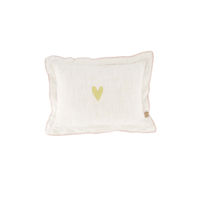 Romantisch off-white kussen met gouden hartje, gestikte rand voor instant warmte op bank of stoel. Superzacht 100% katoen met vulling, tijdloos en perfect als cozy accent of cadeau! Nu online en in de winkel verkrijgbaar.